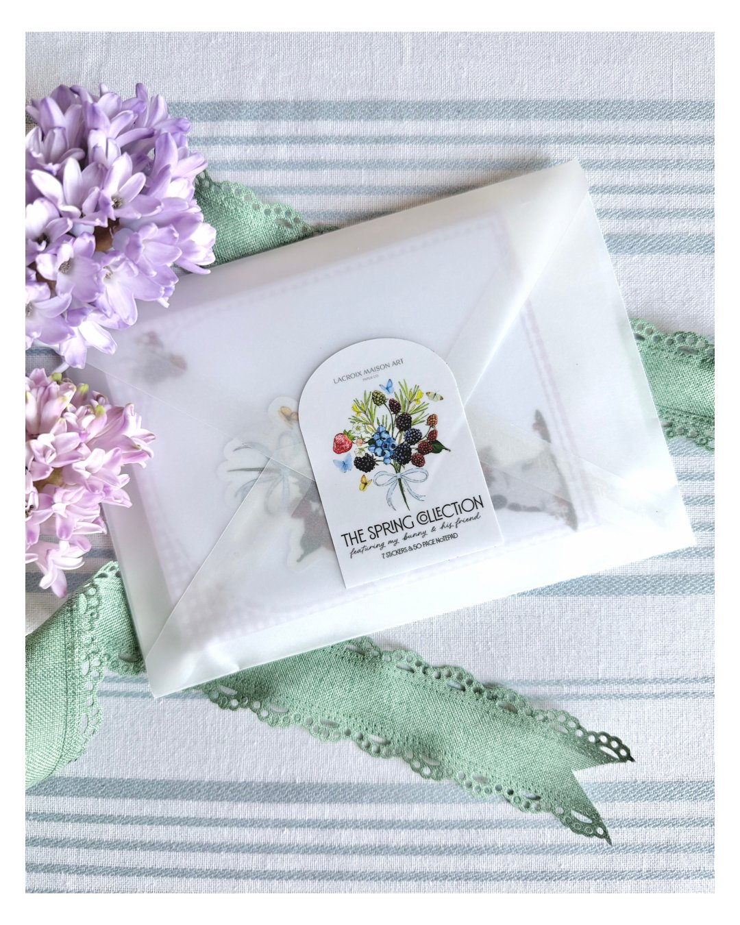 - 5x7" sticker sheet featuring all the spring collection illustrations